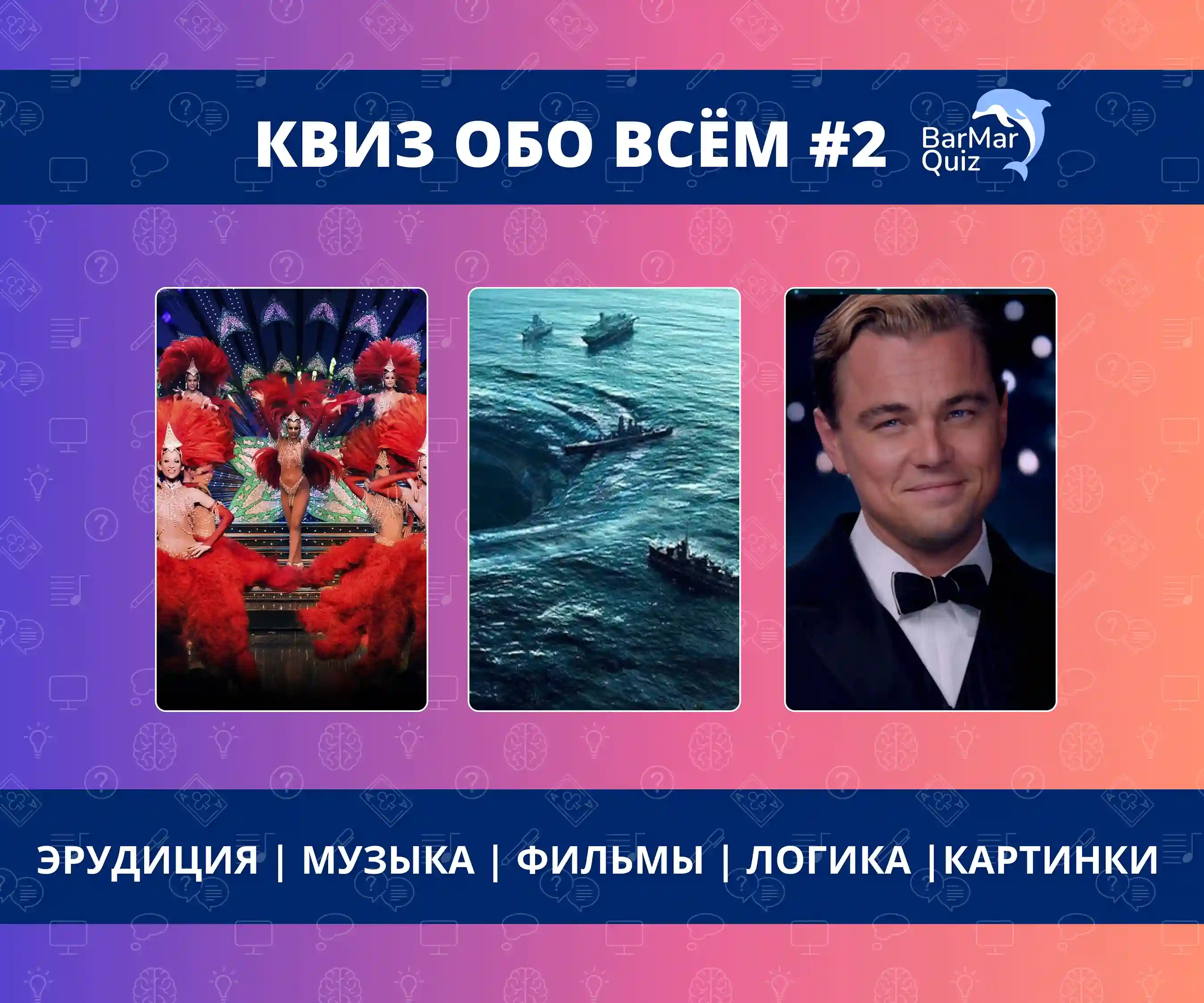 Квиз формата «Обо всём» - это сочетание вопросов на знания и логику, сочетание текстовых и медиатуров, кино, музыка и многое другое. 7 непохожих друг на друга раундов для отличного вечера!